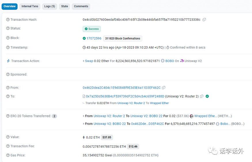 ERC-20 Tokens Transferred:代币的转移情况简要概述。