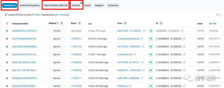 Transactions栏目展示的是与该Token合约的所有交互记录。