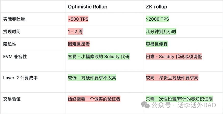 (三)Optimistic Rollup与ZK Rollup技术特性对比图